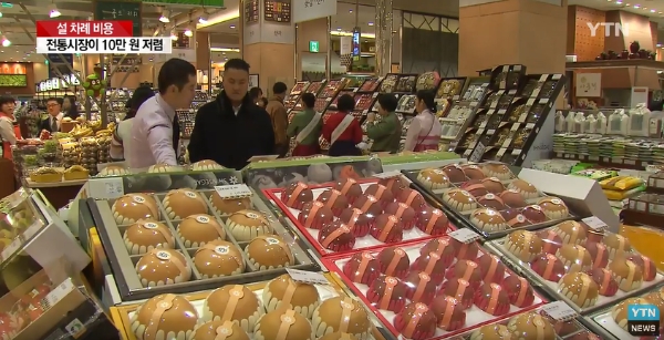 한편 설 차례상을 보다 저렴하게 사려면 대형마트보다는 전통시장이 낫다는 결과도 나왔다.