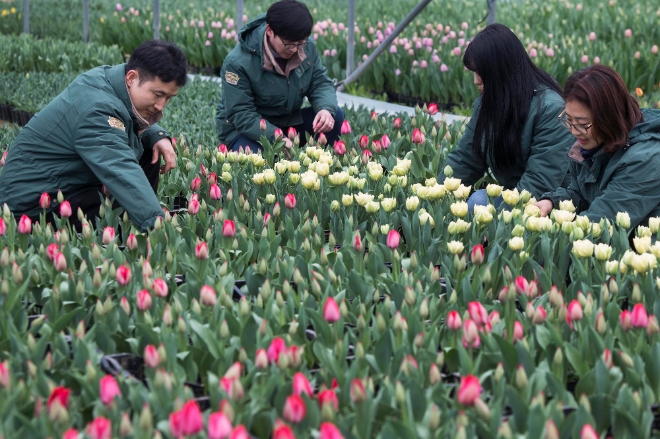 삼성물산 리조트부문은 에버랜드가 오는 16일부터 튤립축제를 시작할 예정이라고 5일 밝혔다. 절기상 경칩을 하루 앞둔 5일, 삼성물산 리조트부문 직원들이 에버랜드 튤립축제를 앞두고 본격 개화하기 시작한 튤립들을 돌보고 있다. 에버랜드 튤립축제는 오는 16일부터 다음달 29일까지 진행되며, 축제기간 약 120만 송이의 봄꽃들이 전시된다.