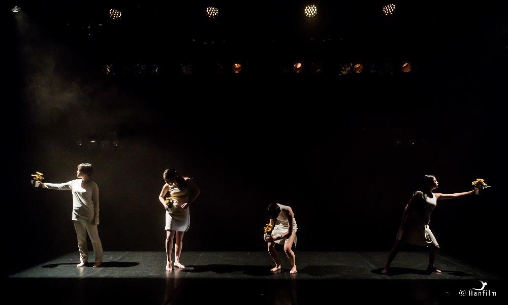 이미지 확대보기『Tomorrow(내일)』: 만개한 청춘의 봄이지만 우울이 깔린다. 내일이 존재하기에 청춘들이 살아간다는 설정은 참혹한 현실이다. 모든 것이 허허롭다. 우울을 털어내기 위해서 일어서야 한다. '내일을 향해 쏴라'가 적합한 명제가 된다. 이 작품은 설정 자체가 코믹하다. 인생은 한방이라는 '로또'와 기상예보에 대한 풍자와 언어유희가 난무하고 기교와 반복적 이미지 창출이라는 현대무용의 중심 경향을 벗어나 있다. 몽롱한 기분에 취하고 싶은 상태를 사이키델릭 조명이 거들고 있고, 작은 화분을 들고 추는 춤을 인상적인 풍경으로 만들어 버린다. 미래에 대한 불안감으로 사선과 직선을 오가던 청춘들은 화분을 중앙에 모으고 바라보다가 주변을 돈다. 자신들과 동일시되는 화분에 청춘 방효정은 물을 준다. 암울은 모두의 눈을 가리게 만든다. 마이크가 다시 들어서고 날씨 얘기가 등장하면서 청춘들의 상황이 반복됨을 알린다.