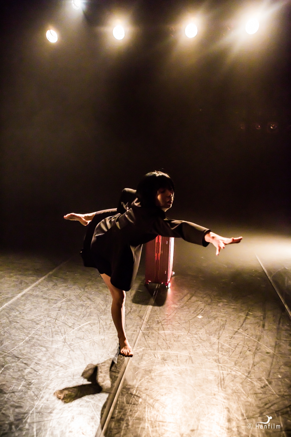 시간이 만들어낸 삶의 상실감 위로 정열이 스며든다. 무대 위에는 자신의 또 다른 상징인 빨간 캐리어가 놓이고, 여인은 격정의 서(敍)를 써내려간다. 전편의 서정들은 확장되고, 세부묘사도 추가된다. 까만 원피스 속에 숨겨두었던 열정의 꽃은 타오르고, 일렁거리는 마음은 바닥의 기하학적 조형이 대신한다. 조명은 밝아오며 여인은 강박을 털어내며 캐리어 옆에 가볍게 앉는다. 박제된 현실 속에서도 가난했던 젊은 날은 늘 행복했던 추억으로 남는가 보다.