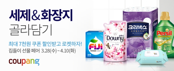 쿠팡이 4월 10일까지 ‘집들이 선물 페어’를 진행한다. 세탁세제, 섬유유연제, 주방세제, 청소 세제, 화장지, 물티슈 등 1000여 개의 상품이 준비되어 있다. ‘카테고리 할인관’에서 2만원, 3만원 이상 구매하면 각각 4000원, 7000원의 쿠폰 할인을 받을 수 있다 일부 로켓배송 상품은 추가 즉시 할인으로 더 싸게 살 수 있다.