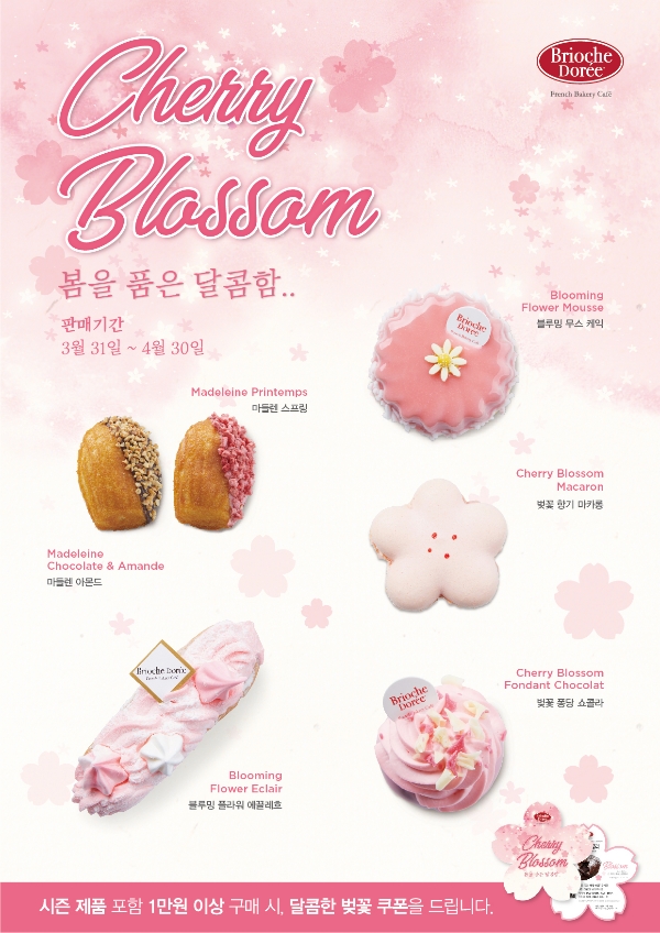 이미지 확대보기브리오슈도레는 30일까지 31일 동안 벚꽃 시즌 신제품과 피크닉 세트를 구성, 벚꽃 프로모션을 진행한다. 벚꽃 시즌 신메뉴는 시즌 파티스리 4종과 시즌 마들렌 2종으로 구성돼 있다.