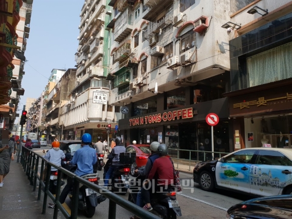 이미지 확대보기순간, 매장에 들어설 때도 들었던 인사인지 의심했다. 커피를 마시며 아픈 다리를 두드리고 있자니 선명하게 들리는 한국어 인사가 너무 자연스럽게 매장에 울려퍼지고 있었다. 부활절 연휴 기간이 시작된 지난달 30일, 마카오는 휴일 분위기가 물씬 났다. 대표적인 관광지인 세나도 광장은 인산인해였다. 내리쬐는 햇빛과 인파를 피하기 위해 무작정 걷다보니 반가운 간판이 보였다.