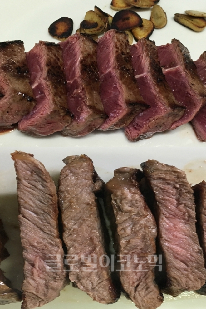 GS25에 ‘한 끼 스테이크’를 납품하는 업체 관계자는 “뒤에 나온 레시피는 가장 맛있다고 하는 미디움을 상정하고 만든 일반적 조리법이다”고 말하면서도 “어떤 소에서 나온 고기는 더 두껍고 어떤 소에서 나온 고기는 덜 두꺼워 공산품처럼 규격화해서 제품을 만들기 어려운 측면이 있다”고 말했다.