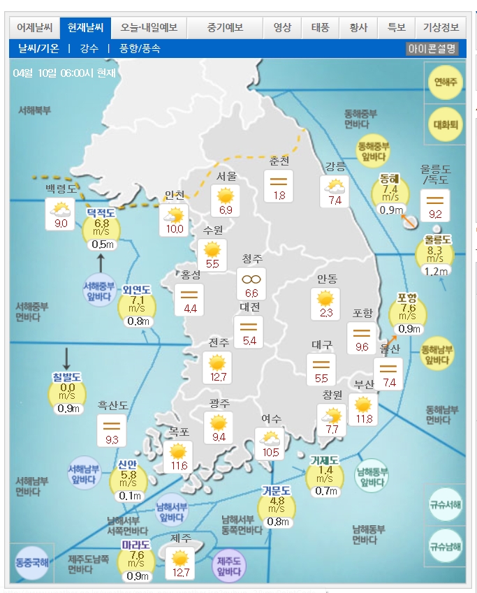 이미지 확대보기기상청은 “남해안을 중심으로 바람이 강하게 부는 곳이 많아 시설물·건강관리에 주의해야 한다”며 “ 미세먼지 농도는 전 권역에서 '좋음' 수준을 나타내겠다”고 밝혔다.