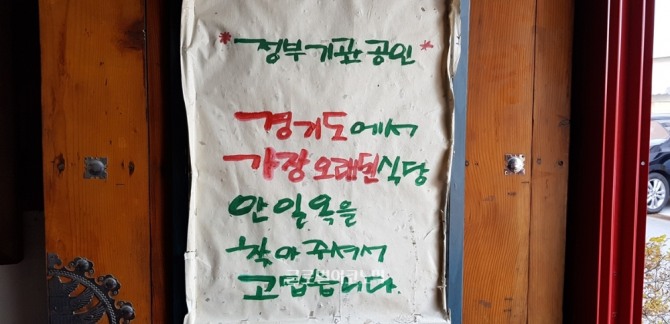 이미지 확대보기눈에 띄는 한옥의 외향은 단연 돋보였다. 오래된 기왓장에서 100년의 역사가 느껴졌다. 한식재단에서 출간한 '한국인이 사랑하는 오래된 한식당'에서 안일옥은 우리나라에서 다섯 번째로 오래된 식당으로 소개되어 있다. 난로 너머사이로 보이는 실내의 반질반질 윤기가 나는 바닥은 오래된 정서를 느끼기에 충분했다.
