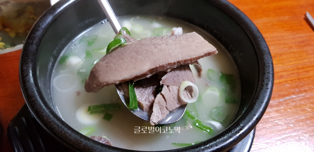 설렁탕은 한국인의 애환이 서려 있는 있는 대표적 소울푸드다. 진한국물과 고기 한 점은 먹기도 전에 생각만으로도 행복해진다. 뚝배기속에 담겨진 국물은 뽀얗다. 첫숟가락을 떠서 입으로 넣어본다. 고소한 맛에 풍미감이 입안을 가득 채운다. 목젓을 타고 내려가면서 육향의 구수함이 올라온다.