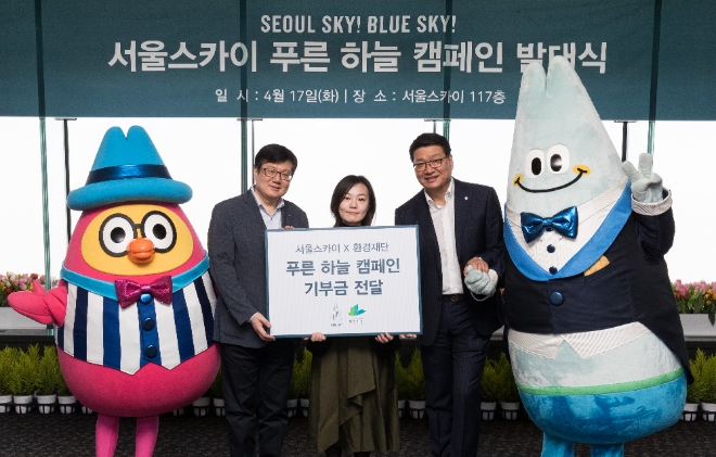 서울스카이는 사회 공헌활동을 진행하고 미세먼지, 황사 등으로 인한 대기오염을 극복하기 위한 기금을 마련할 계획이다. 서울스카이는 이날 환경재단에 난지공원 숲 조성을 위한 기부금을 전달했다. 선착순 방문객 300명에게는 공기정화 식물을 증정했다.