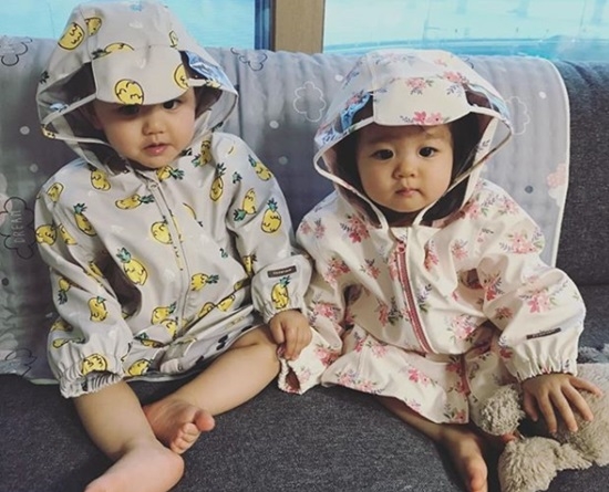 공개된 사진에는 우비를 입고 쇼파에 앉아있는 쌍둥이 남매의 모습이 담겨있다. 이란성쌍둥이인 한그루의 자녀들은 벌써 훌쩍 자라 귀여운 외모를 뽐내고 있다.