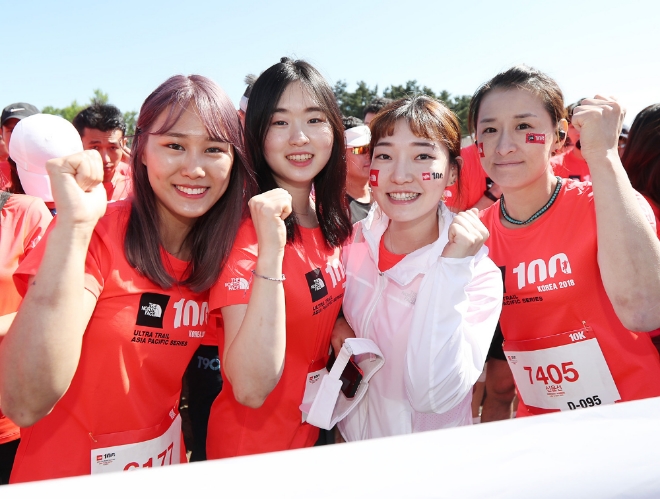이미지 확대보기21일 노스페이스에 따르면 이번 대회는 세계적인 트레일러닝 선수들이 참여해 기존 대회 기록을 뛰어넘는 성적을 달성해 눈길을 끌었다. 노스페이스 애슬리트팀 소속 김지섭 선수(30)는 작년 우승자보다 약 1시간 이상 기록을 단축해 100㎞ 남자부에서 우승했고 차민화 선수가 100㎞ 여자부에서 우승을 차지했다. 노스페이스는 19일, 20일 이틀간 올림픽 개최 도시인 강원도 강릉 및 평창 일대를 달리는 트레일러닝 대회 ‘2018 노스페이스 100 코리아’를 개최했다.