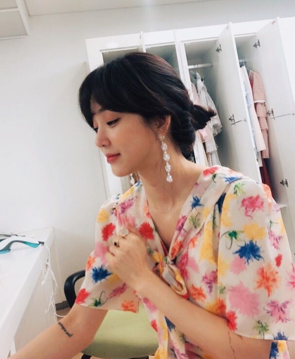 특히 화이트 티셔츠와 함께 블랙과 옐로우가 믹스매치 된 풍성한 샤 스커트는 정려원의 사랑스러움을 극대화시켰다.