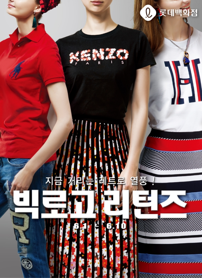 롯데백화점이 다음달 1일부터 10일까지 ‘빅로고(Big-Logo) 리턴즈’ 이벤트를 연다. 게스, 리바이스 등 빅로고 대표 브랜드의 롯데백화점 단독 아이템을 선보인다. 모자와 티셔츠 럭키박스 행사도 준비했다. 온라인몰 ‘엘롯데’에서도 ‘Retro, 그때 그 느낌’ 기획전을 열고 나이키, 아디다스의 대표 티셔츠를 40% 저렴하게 판다.