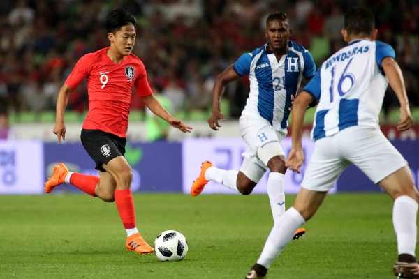 28일 오후 8시 대구스타디움에서 온두라스와 한국의 축구국가대표 평가전이 펼쳐졌다. 신태용 감독은 이날 기성용이 빠진 자리를 이승우로 메웠다. 정우영과 주세종, 이청용이 이승우와 함께 중원에 섰다. 황희찬과 손흥민이 최전방에서 온두라스 골문을 두드렸으며, 홍철, 김영권, 정승현, 고요한이 포백으로 수비진을 구성했다. 골문은 조현우가 지켰다.