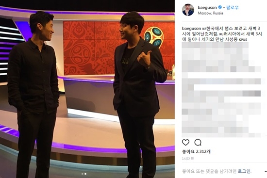 그는 또 함께 월드컵을 중계하게 된 박지성 해설위원의 사진을 올려 누리꾼들의 환호를 이끌었다.