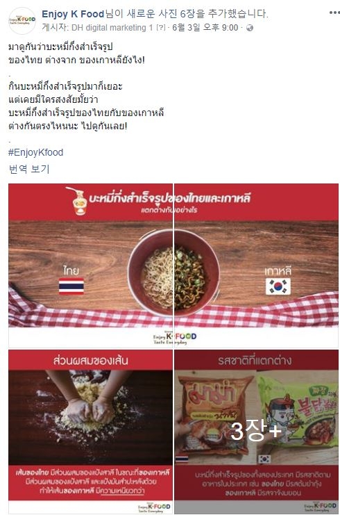 이미지 확대보기베트남의 경우 인터넷 사용자 10명 중 9명이 페이스북을 사용할 정도로 SNS의 파급력이 높으며, 태국은 2017년 기준 스마트폰 보급률이 70%를 넘은 가운데 페이스북 사용자가 4700만 명에 달한다. 미얀마 역시 인터넷 사용자의 80%가 페이스북을 사용하고 있어 아세안 시장 마케팅을 위해서는 SNS 채널 공략이 무엇보다 중요하다. 이에 따라 aT에서는 페이스북 등 SNS에 팬페이지를 개설하여 한국 농식품을 홍보하고 있다.
