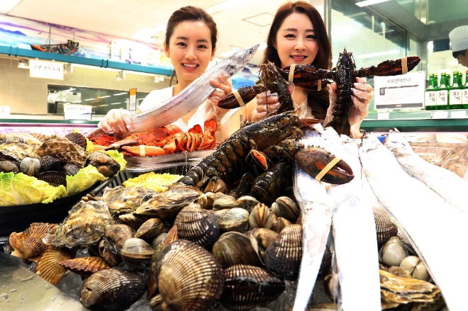 이마트가 21일부터 오는 27일까지 활랍스터, 제주은갈치, 모둠조개 수산물 3총사를 만원 이하의 가격에 판매한다. '살이 통통한 활랍스터’(320g내외/캐나다산)와 '제주은갈치’(중/해동/5마리/ 국산)는 각각 1만원, '한가득 모둠조개(1.5kg 내외/국산)는 9980원이다.