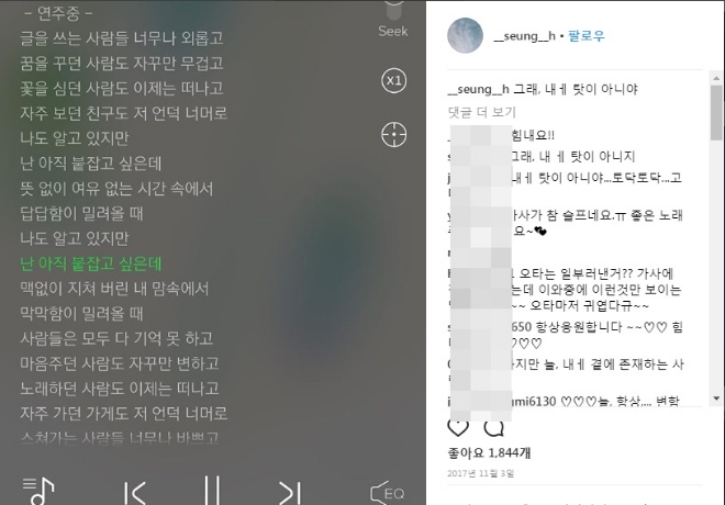 정승환은 자신의 인스타그램에 권나무의 ‘내 탓은 아니야’라는 노래의 가사를 캡처한 사진을 게시하며 “그래, 내ㅔ탓이 아니야”라는 글을 올렸다.