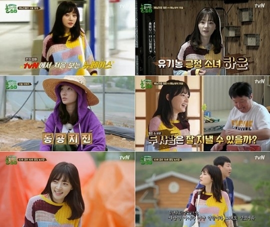프로그램에 출연하게 된 계기에 대해 묻자 송하윤은 "인간 위주의 삶에서 벗어나 자연이 주는 감사함을 느끼고 싶었다"는 심오한 말로 주위를 당황하게 했다. 이어 그는 농촌에 도착하자마자 트랙터와 이앙기를 넋 놓고 쳐다보는 등 순도 100%의 리액션으로 웃음을 자아냈다.