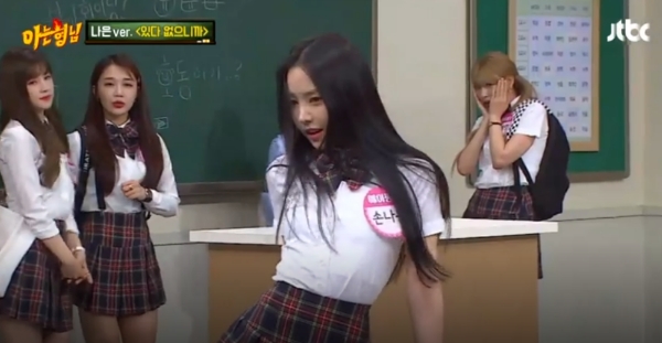 손나은의 춤을 본 형님들은 감탄하며 그를 추켜세웠다. 이어 윤보미도 똑같은 노래로 똑같은 춤을 췄으나, 이내 "안무를 모른다"며 아저씨 같은 댄스로 마무리해 아형 멤버들에게 웃음을 안겼다.