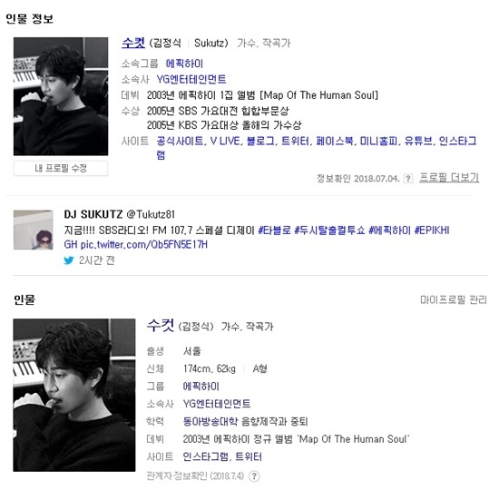 이미지 확대보기4일 양대 포털사이트인 네이버와 다음에서 에픽하이 투컷을 검색하면 '수컷'으로 바뀐 인물정보가 제공된다.