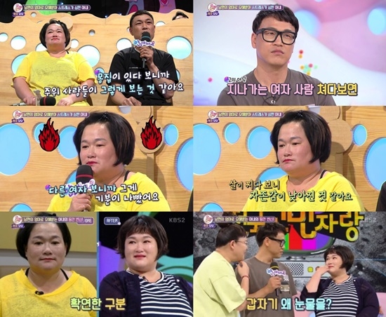 남편은 "아내가 스트레스를 받아 폭식을 해 1년 사이 15kg이나 쪘다"며 "살이 찌니까 자존감도 많이 낮아진 것 같다"고 말했다. 남편은 "운전을 하는데 지나가는 여자를 쳐다봤다고 차가 흔들릴 정도로 때린 적이 있다"거나 "여자 동창생이 결혼한다고 문자메시지를 보냈는데, 그 동창생에게 우리 결혼사진을 보낸 적도 있다"고 토로했다.