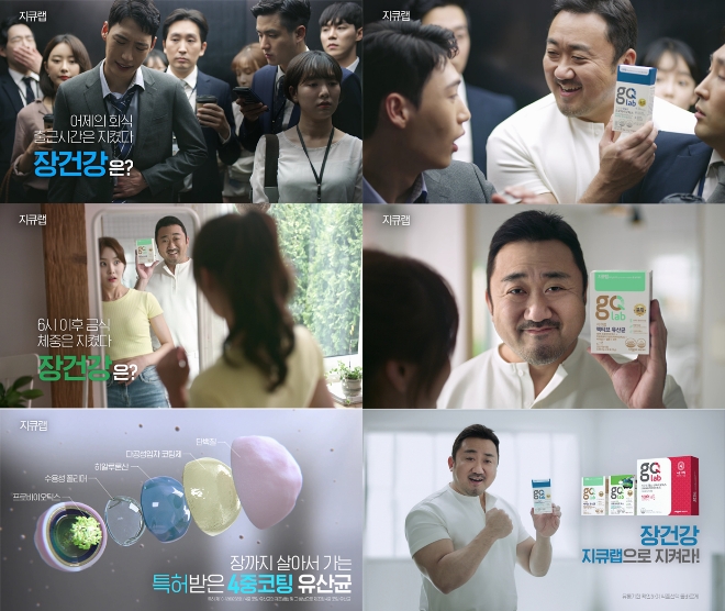 일동제약은 유산균 브랜드 ‘지큐랩’의 새로운 TV-CM을 방영한다고 10일 밝혔다. 새 광고에는 바쁜 일상과 회식에 시달리는 직장인, 체중 관리에 관심이 높은 여성 등을 그린 각각의 상황 속에서 메인 모델인 마동석이 코믹하면서도 든든한 모습으로 나타나 ‘지켜줄게, 지큐랩!’을 외친다.