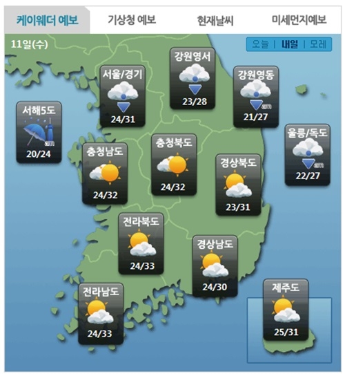 내일 날씨. 사진=케이웨더
