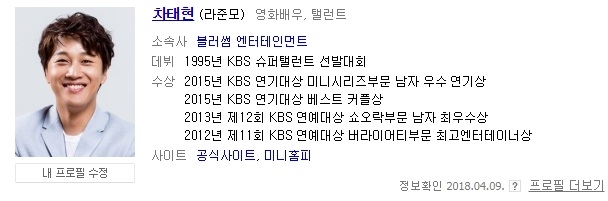 이미지 확대보기차태현의 포털사이트 프로필 상 이름에 ‘차태현(라준모)’라는 표기가 등장해 네티즌들이 차태현의 본명이 라준모냐는 문의를 잇따라 올리고 있다.
