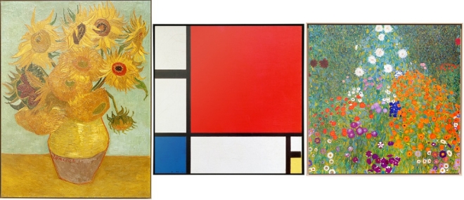 이미지 확대보기CJ오쇼핑 플러스는 오는 28일 밤 12시45분부터 45분 동안 ‘뮤라섹 명화 특별전’ 방송을 통해 반 고흐의 ‘해바라기’와 클림트의 ‘꽃의정원’, 몬드리안의 ‘빨강, 파랑 및 노랑의 구성’등 명화 10점의 작품을 판매한다고 밝혔다. 오랜 기간 남녀노소를 가리지 않고 많은 사람들에게 사랑받아오고 있는 작품을 선별했다.