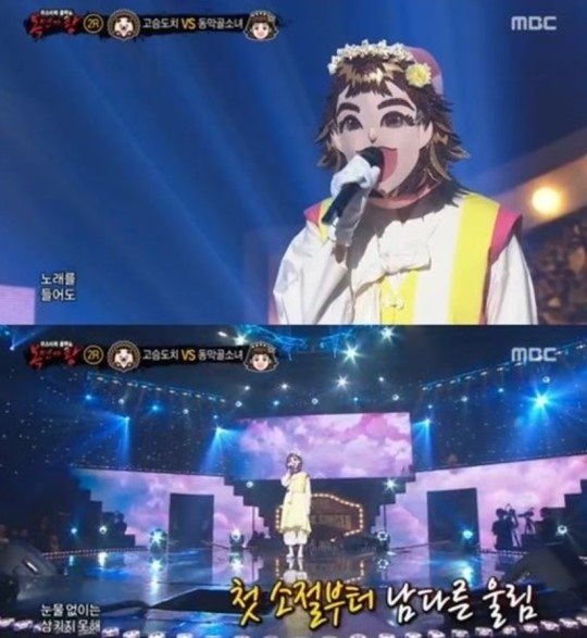 한편 '복면가왕' 새로운 가왕에 오른 동막골소녀는 걸그룹 EXID 솔지가 아니겠냐는 누리꾼들의 추측이 나오고 있다. 갑상선항진증으로 한동안 활동을 중단한 솔지는 최근 건강을 회복하고 컴백한다는 소식을 전한바 있다.