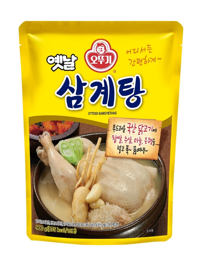 오뚜기 ‘옛날 삼계탕’은 부드러운 국산 닭고기에 찹쌀, 수삼, 마늘, 은행을 넣고 푹 끓여낸 제품이다. 국산 닭고기의 부드러운 육질을 느낄 수 있다. 오뚜기가 다년간 축적해온 탕류 조리 노하우로 끓인 진하고 담백한 육수가 넉넉하게 들어있다.