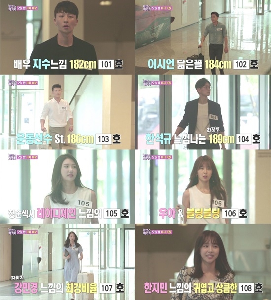 뒤이어 등장한 107호는 '다비치' 강민경 닮은 꼴 출연자였다. 107호의 등장에 전현무는 "강민경 씨 동생아니냐"고 말했을 정도. 마지막 108호는 귀엽고 상큼한 이미지의 여성이었다. 임수향이 미모에 감탄하는 동안 전현무는 "한지민과 손연재 느낌"이라고 밝혀 기대감을 자아냈다.