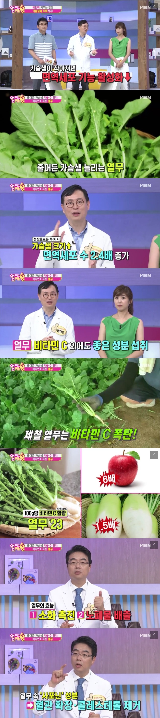 염창환 전문의는 항암력은 높이고 가슴샘을 재생하는 식품으로 비타민C가 풍부한 열무를 소개했다.