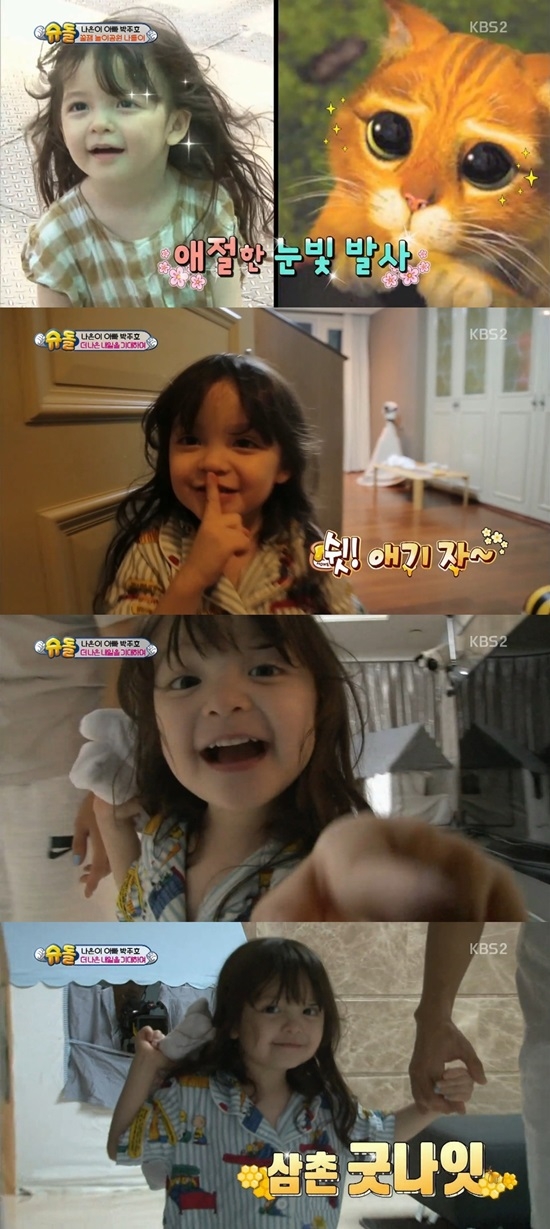 이날 '슈돌‘에서 가장 높은 시청률을 기록한 장면은 박주호 딸 나은이가 차지했다. '슈돌' 새식구로 합류한 축구선수 박주호와 나은-건후 남매는 첫 등장부터 폭발적 반응을 이끌어내며 시청자들의 관심을 한 몸에 받았다. 뿐만 아니라 나은-건후 남매의 동영상 또한 뜨거운 사랑을 받으며 조회수 1위를 기록하고 있다.