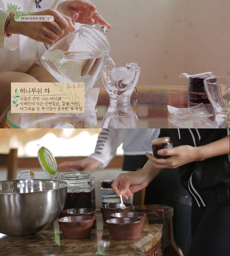 '이너셋 허니부쉬' 광고모델로 활동 중인 김지민은 뷰티 유튜브 채널까지 운영하는 뷰티 전문가다. 이들은 이날 방송에서 세속적인 뷰티에서 벗어나 이너뷰티 라이프를 실천했다. 유기농 천연 자연 코튼으로 만들어진 옷을 입고, 자연 그대로를 담은 식재료로 건강한 밥상을 차렸으며, 올리브오일을 활용한 클렌징과 꽃차를 활용한 노화방지팩 등 다양한 자연주의 뷰티를 선보였다.