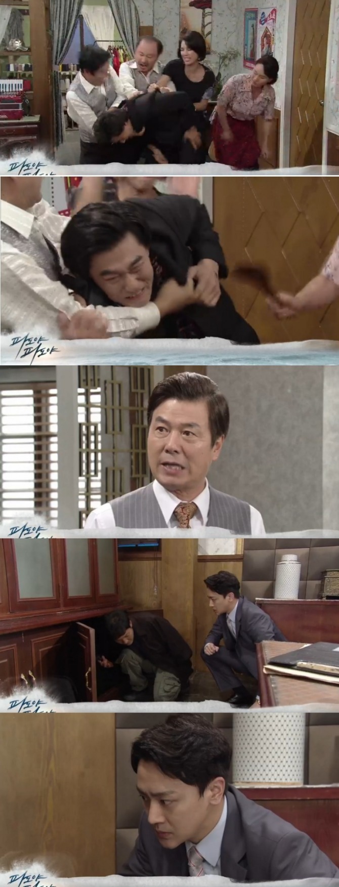이미지 확대보기27일 오전 방송되는 KBS2 TV 소설 '파도야 파도야'(극본 이현재·이향원, 연출 이덕건) 139회에서는 조동철(이주현 분)이 금마차 직원들에게 몰매를 맞는 가운데 오정훈(장재호 분))이 도끼(박유승 분)의 도움으로 황창식(선우재덕 분)의 정치자금 상납 장부 확보에 나서는 반전이 그려진다.