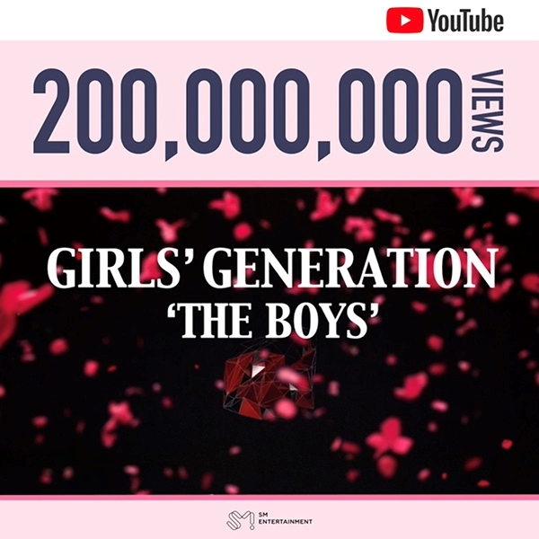 이미지 확대보기소속사 SM엔터테인먼트에 따르면, 지난 2011년 10월 SMTOWN 채널을 통해 공개된 'The Boys' 뮤직비디오의 조회수가 29일 2억뷰를 넘어섰다.
