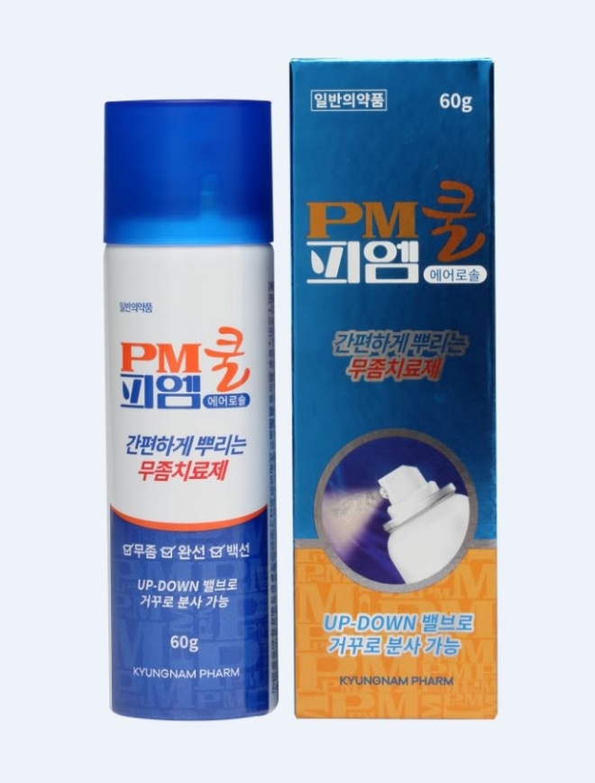 ‘피엠쿨에어로솔’은 일반의약품으로 약국에서 구입할 수 있으며, 질환부위를 깨끗이 씻고, 완전히 건조시킨 후 1일1회 적당량을 뿌려주면 된다.