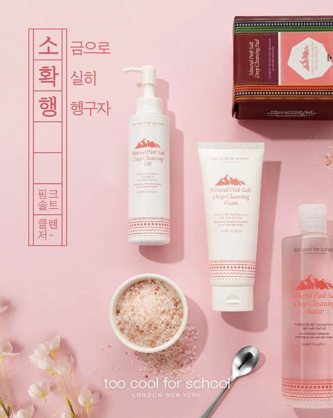이밖에도 13가지 식물성 오일로 진한 메이크업부터 모공 속 노폐물, 미세먼지까지 확실하게 클렌징 해주는 △미네랄 핑크 솔트 딥 클렌징 오일, 미네랄을 더한 미셀라 워터를 함유해 빠르고 강력한 클렌징과 산뜻한 마무리감을 선사하는 △미네랄 핑크 솔트 딥 클렌징 워터, 도톰한 3중 레이어 패드 한 장으로 베이스부터 포인트 메이크업 클렌징까지 한 번에 끝내는 △미네랄 핑크 솔트 딥 클렌징 패드 등 총 4종으로 투쿨포스쿨의 클렌징 라인업이 한층 강화됐다.