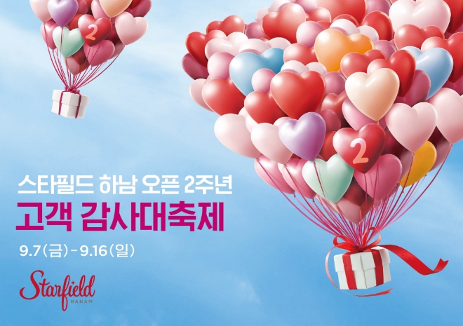 이미지 확대보기스타필드 하남은 개점 두돌을 맞아 7일부터 16일까지 ‘스타필드 하남 개점 2주년 감사 대축제’를 연다고 밝혔다. 온 가족이 체험 가능한 ‘캐릭터 페스티벌’을 비롯해, 엔터테인먼트 시설 초특가 할인 이벤트와 200여개 브랜드가 참여하는 사은 행사 등을 준비했다.