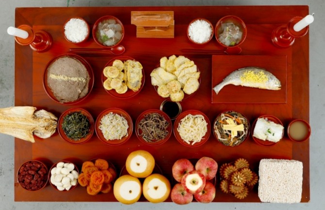 차례상은 다양한 과일을 비롯해 수제 모듬전과 갈비찜 등 명절 음식들이 4~5인 기준으로 풍성하게 구성됐다.