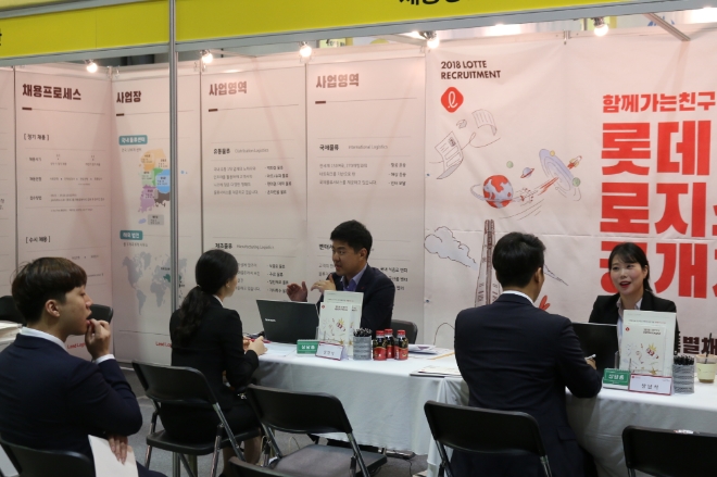 롯데로지스틱스는 지난 10일 개최된 ‘2018 물류산업 청년 채용박람회’ 참가 및 12일 캠퍼스 리쿠르팅, 그리고 롯데그룹 채용홍보행사인 Job-café(각 계열사 채용담당자 및 직무담당자가 참석하는 채용상담행사)에 참여한다.