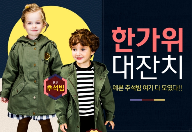 아이들이 편하게 입을 수 있는 가을 시즌 데일리 패션 아이템도 다양하게 선보인다. 리바이스키즈는 셔츠와 맨투맨, 데님팬츠를 1~3만원대로 판매하고, 앤디애플 유아용 트렌치코트는 2만원대로 살 수 있다. 월튼키즈는 추석에 어울리는 정장 스타일의 아동복 세트를 1~4만원대로 구성했고, 2세 이하 영유아용으로는 알로앤루와 알퐁소가 F/W 실내복과 상하복을 68%까지 할인한다.