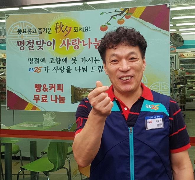 또한, 올해부터는 점포 앞에 ‘명절에 고향에 못 가시는 주민들에게 GS25가 사랑을 나눠 드립니다’라는 현수막을 자비로 제작해 주변 고객분들에게 명절의 소중함과 따뜻한 마음을 나누고자 한다.
