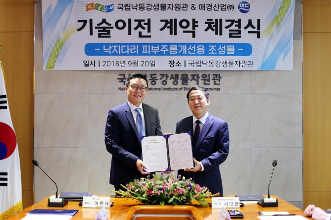 애경산업과 국립낙동강생물자원관은 지난 20일 낙지다리 추출물에 대한 기술이전을 체결했으며, 이를 통해 특허기술을 이용한 피부 주름개선 화장품을 오는 2020년 내로 개발할 예정이다.
