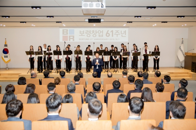 이날 기념식에서는 장기근속자와 우수사원, 공로자에 대한 표창 수여식을 가졌다. 또한 보령제약그룹 임직원으로 구성된 보령엄지합창단이 창업기념 공연을 진행해 그 의미를 더했다.
