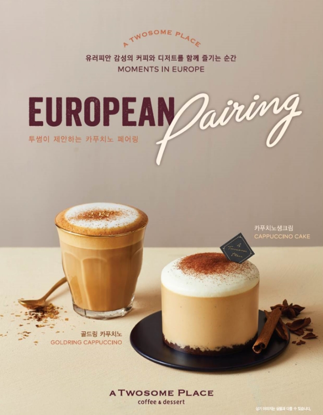 이미지 확대보기투썸플레이스는 올해 가을 카푸치노를 콘셉트로 개발한 ‘골드링 카푸치노’와 ‘카푸치노생크림’ 케이크를 선보이며 ‘유러피안 페어링’ 문화 마케팅을 더욱 강화한다고 1일 밝혔다. 투썸플레이스는 ‘골드링 카푸치노’와 ‘카푸치노생크림’ 케이크를 조합해 이를 두 번째 유러피안 페어링(European Pairing) 전략제품으로 적극 알릴 계획이다.