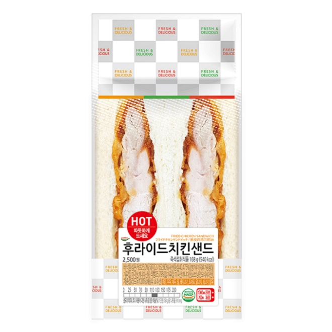 세븐일레븐이 선보이는 '후라이드 치킨샌드'는 바삭하게 튀긴 통닭다리살을 부드러운 식빵 안에 통째로 넣어 고소하고 쫄깃한 식감을 그대로 느낄 수 있는 상품이다. 두툼한 두께감을 자랑해 한 끼 식사 대용으로도 손색이 없다. 또한 상큼한 피클 샐러드와 마요네즈 드레싱을 함께 넣어 자칫 느끼할 수 있는 맛을 잡았다.