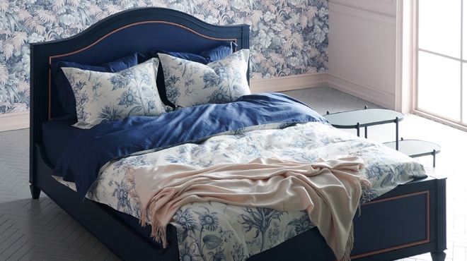‘베네딕트 자르뎅(Benedict JARDIN)’은 프랑스 수입원단에 펜화 느낌의 감각적인 플라워 패턴을 입혀 로맨틱한 유러피안 감성을 담았다. 린넨 면 혼방 특유의 톡톡하고 조직감이 느껴지는 소재가 유니크한 매력을 더한다. 또한, 60수 샤틴면을 함께 활용해 부드러운 촉감으로 사용감을 극대화했다. 따뜻하고 부드러운 컬러감의 민트와 유러피안 스타일의 엣지있는 스타일링이 가능한 화이트 컬러 중 선택 가능하다.