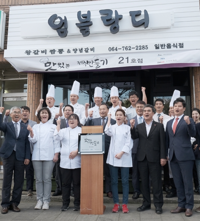 이미지 확대보기호텔신라는 맛있는 제주만들기 21호점으로 선정된 서귀포시 일주동로 소재의 ‘냠냠냠’이 ‘엄블랑디’로 상호를 변경하고 메뉴 조리법, 손님 응대 서비스에 대한 컨설팅과 주방 설비 지원 등을 받고 이달 4일 재개장했다고 밝혔다.
